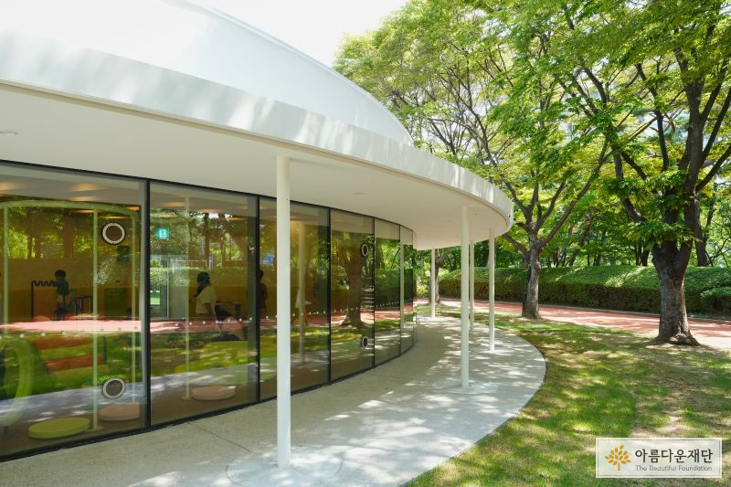 놀이터 개장 후 발달장애 아동이 놀러 온 적이 있습니다. 다른 아이들은 소리를 지르며 모험 놀이존에서 매달리고 미끄럼을 타는 반면 그 아이는 조용하게 감각놀이존 낮은 창으로 공원을 응시하며 누워 있었습니다. 아이가 미끄럼틀 같은 놀이시설만 좋아할 거란 생각, 장애아동은 휠체어를 탔을 것이라는 편견, ‘이것도 놀이시설인가?’라는 의문 등 무장애 실내 놀이터 의미를 되새기는 아이의 조용한 응시였습니다.