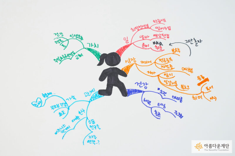 마인드맵은 아이들의 성장을 돕는 동시에 희망선생님들이 자신의 삶을 정리하고 앞으로 나아갈 방향을 다시 그려보는 지도가 되었습니다.