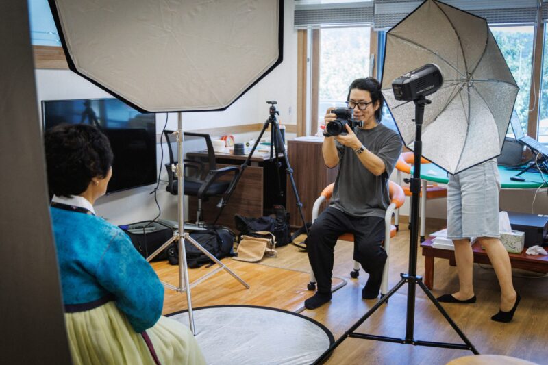 사진촬영 현장은 그야말로 웃음꽃이 가득했습니다. 대기실에서 이 옷이 예쁠지, 저 옷이 예쁠지를 고민하시며 어르신들은 그야말로 소녀같은 웃음을 보이셨습니다. 처음에는 어색하신 듯 머뭇거리며 한발 물러서있던 주민분들도 하나 둘 찍고 싶다는 의사를 보이셨고 처음 몇 명만 촬영할 예정인 마을에서 20명으로 늘어나는 경우도 있었습니다. 옷을 갈아입고 촬영을 준비하여 사진을 인화하는 전과정은 시간이 오래 걸리지만 그 긴 기다림에도 묵묵히 순서를 기다리며 마지막에는 환한 웃음과 함께 감사하다는 인사를 하시는 장면을 보며 다시 한번 ‘심리 지원’의 힘에 대해 생각해보는 계기가 되었습니다.