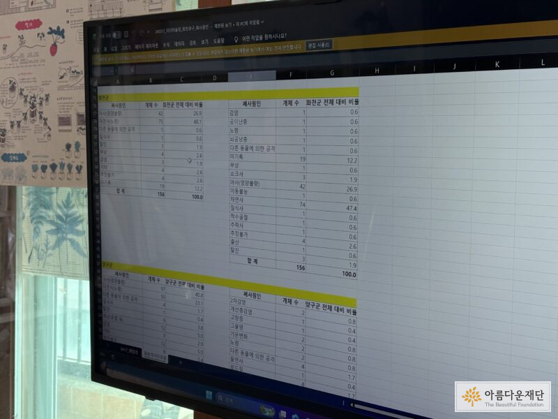 “제일 처음 만든 통계예요. 좀 단순해 보이죠? 근데 신고가 됐던 시점에는 이 수치만 존재했어요. 200마리가 죽었다고 하는데 도대체 얘네가 어디서 죽은 건지 그리고 언제 죽은 건지 데이터도 없고요. 정보공개청구를 하면서 자료를 입력하기 시작했습니다.”