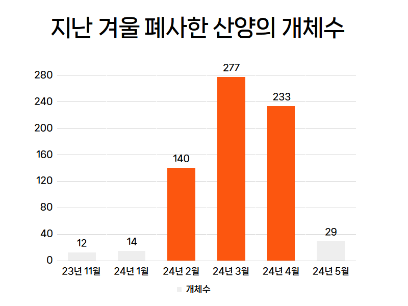 모두가 폭설 때문이라고 했다. 정 국장은 다른 이유가 있다고 확신했다. 그러나 근거 없는 확신만으로 대책을 요구할 순 없었다. 정확한 증거가 필요했다. 정부에 등록되어 있는 산양 폐사 데이터를 기초로 통계를 정리하기 시작했다.