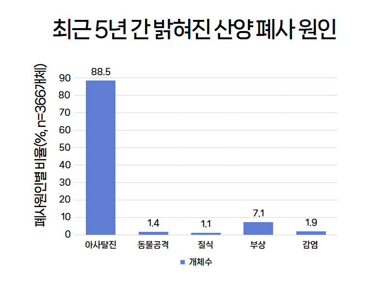 모니터링을 병행하며 593개체의 폐사 원인을 파악한 데이터, 왼쪽과 비교하면 데이터가 구체화되었음을 알 수 있다. (2024년)
