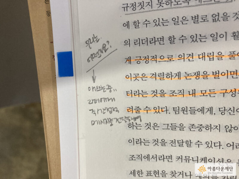 아름다운재단에는 독특한 사내 프로젝트가 있습니다. 바로 ‘비영리 안의 비영리’, 줄여서 ‘비안비’라고 불리는 프로젝트인데요. 재단 구성원들이 학습이나 취미와 같은 소규모 조직을 운영하며 함께 성장하는 활동입니다. 2025년 비안비 <밑줄긋기클럽> 활동 후기를 전해드립니다.