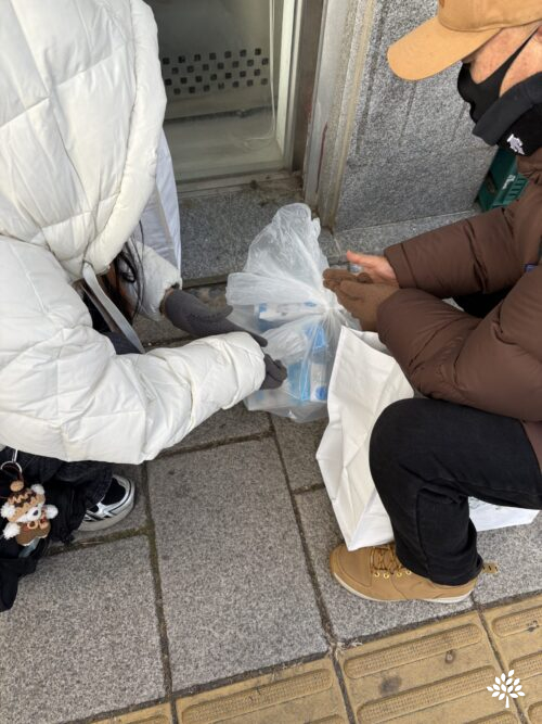 다들 같은 가방을 꺼냈다. 하얀색 수집 가방이다. 호기롭게 장갑없이 갔는데, 시민 한 분이 흔쾌히 새 장갑을 뜯어 빌려주셨다. 덕분에 정말 따뜻했다.