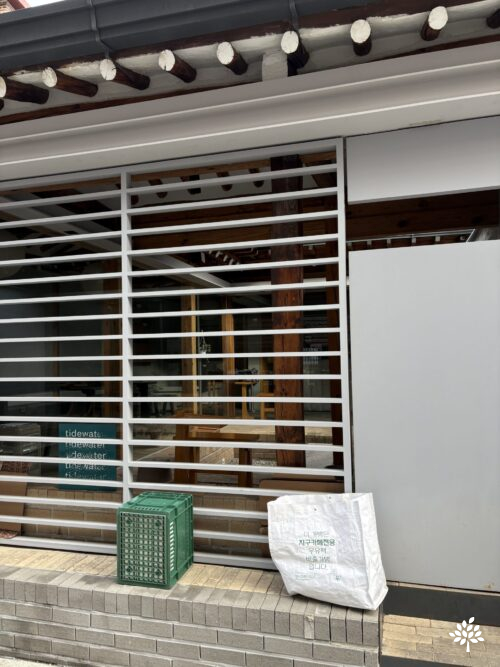 아침 10시라 오픈하지 않은 카페들은 미리 종이팩을 담아 바깥에 두었다. 수집가방 겉면에 쓰레기가 아니라고 세심하게 기재해두기도 했다.