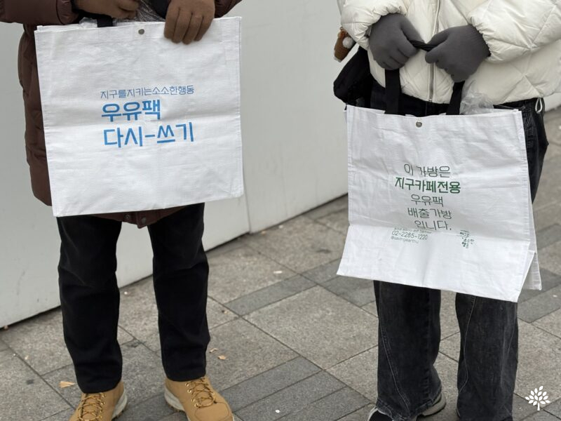 제도적으로 ‘마가 뜨는 기간’에 활약하며 변화를 앞당기는 건 공익단체들이다. 지구를지키는소소한행동(이하 지소행)은 서촌 지구봉사단을 꾸려 카페부터 공략하기로 했다. 종이팩을 가장 많이 내놓는 곳이 바로 카페이기 때문이다. 카페에서 남은 종이팩을 내놓으면, 지구봉사단에 참여하는 시민들이 직접 수거하고, 수거한 종이팩은 제지회사로 보내 재생휴지 등으로 재탄생시키는 방식이다.