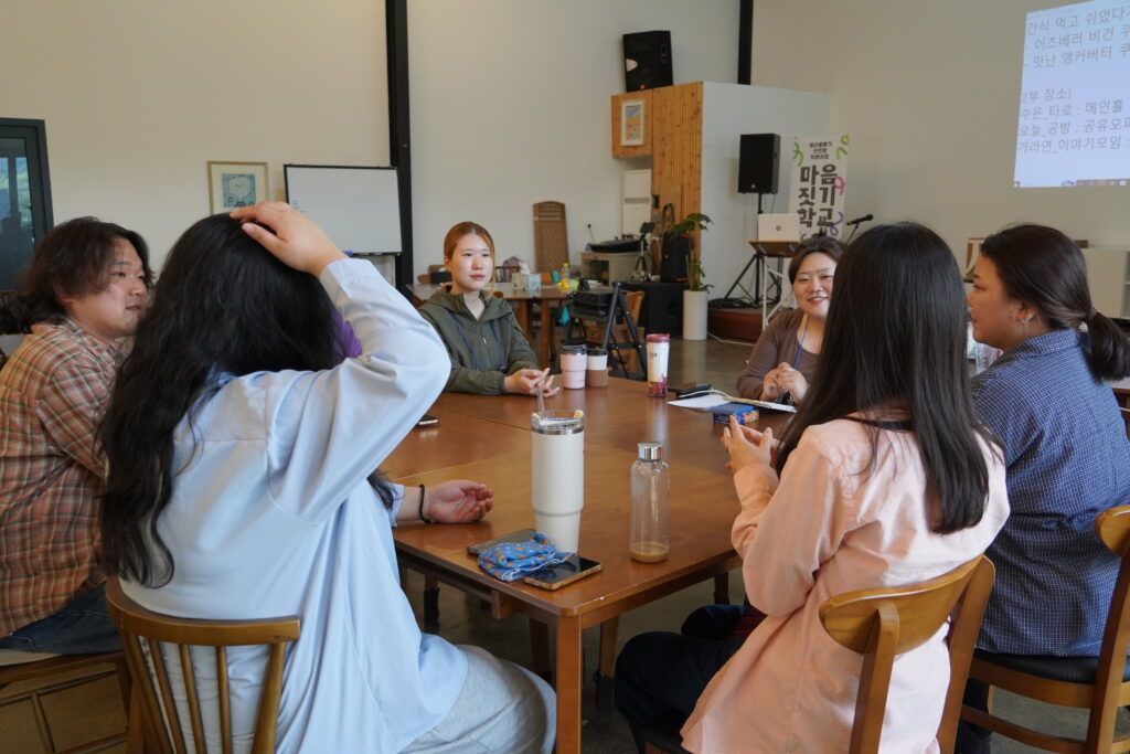 수은: 맞아요. 일반 회사에 다니거나 영리적인 직업을 갖고 있는 친구들 입장에서는 비영리에서 일을 하는 사람들이 왜 이 직업을 선택했는지에 대한 것부터 이해하기 어려워해서 제 입장에선 편하게 얘기하기 어려운 거죠. 그러니까 활동가라는 정체성에 대해서 자유롭게 고민을 나누고 얘기할 수 있는 공간이 저는 필요했던 것 같아요. 그래서 저는 이 마음짓기학교가 끝나고 나서는 제가 활동가라고 말을 할 수 있게 되더라고요. 이게 마음짓기학교에 참여하면서 얻은 거죠.