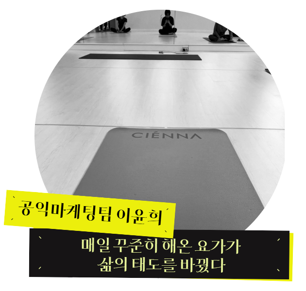 지금 즐기고 있는 운동 종목은? 요가 해당 종목만의 매력이 있다면? 요가에는 사바아사나라는 시간이 있다. 그때 선생님이 ‘생각이 흘러가는 대로 내버려두세요’라는 말을 했다. 그 말이 인상 깊게 남아서 어떻게 할 수 없는 일에 대한 생각이 들 때면 흐르는 강물에 흘러가는 생각을 바라보며 강가에 앉아 있는 나를 상상한다. 그럼 나와 생각이 분리되는 느낌이 든다. 운동하면서 목격한 변화가 있다면? 과거에는 특정 운동에 대한 고정적 이미지가 있었던 것 같다. 그런데 시간이 흐르면서 요가도 다양한 연령대가 함께 하고, 드물기는 하지만 커플이나 부부, 모자가 함께 오기도 한다. 어떤 운동이든 모두가 함께할 수 있는 세상으로 변화한 것이 아닐까 싶다. |