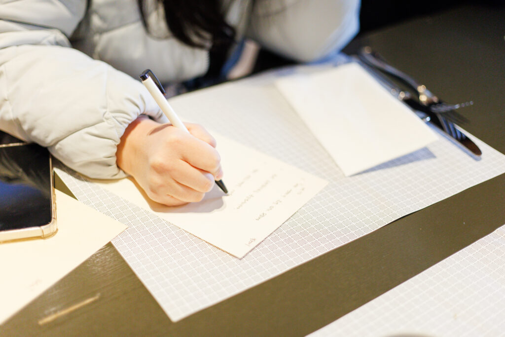 자신에 대해 쓴 문장들은 뽐내고 싶은 모습, 웃음을 위해 살짝 드러낸 약점, 어제 했던 생각, 어쩌면 늘 되뇌는 말들이었다. 하지만 ‘거짓’ 문장을 무엇으로 할지는 쉽게 정해지지 않았다. 한참을 고민한 끝에, 나는 ‘내가 되고 싶은 나’에 대해 쓰기로 했다. 30분 단위로 계획을 세우고, 그것을 실행해 나가는 사람.
