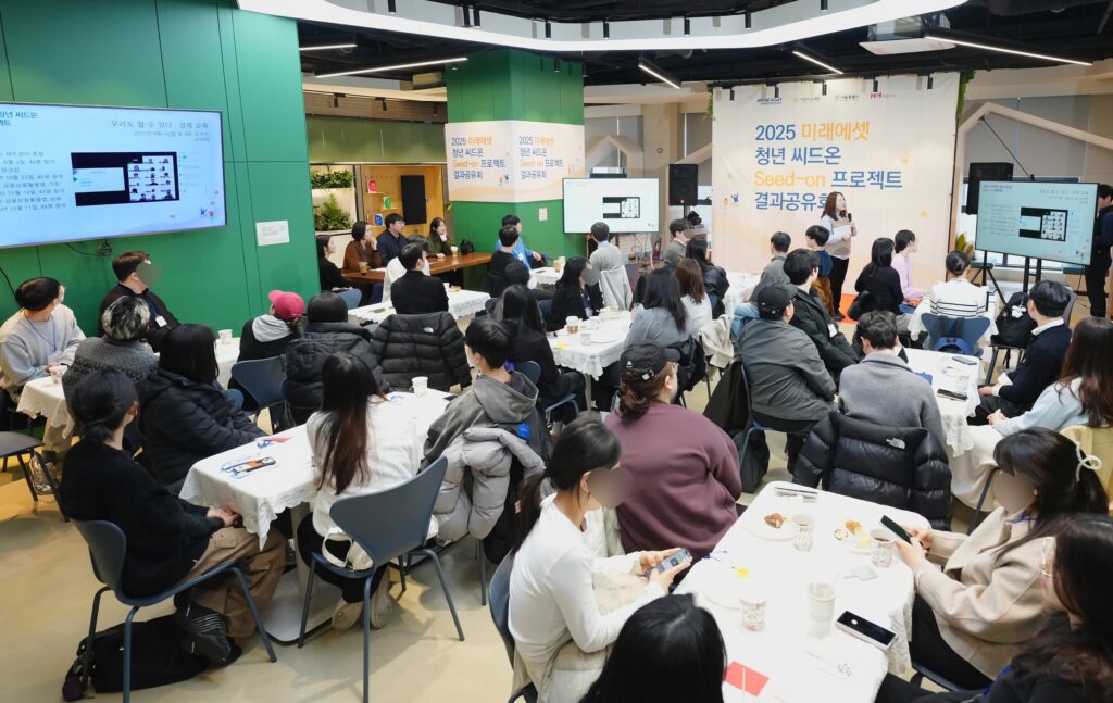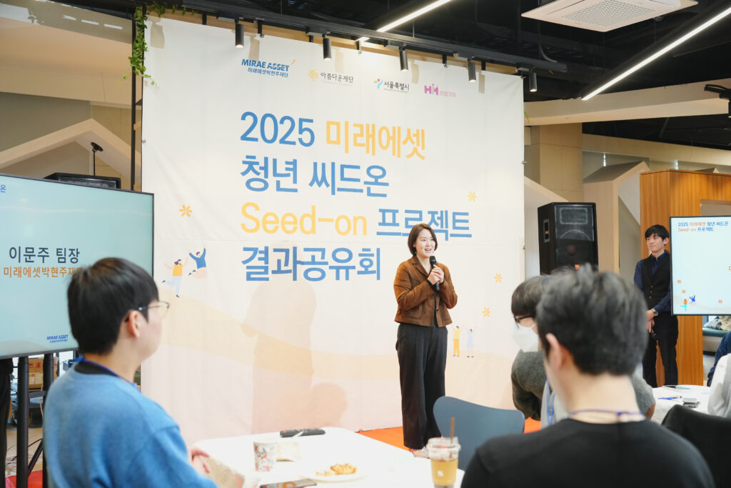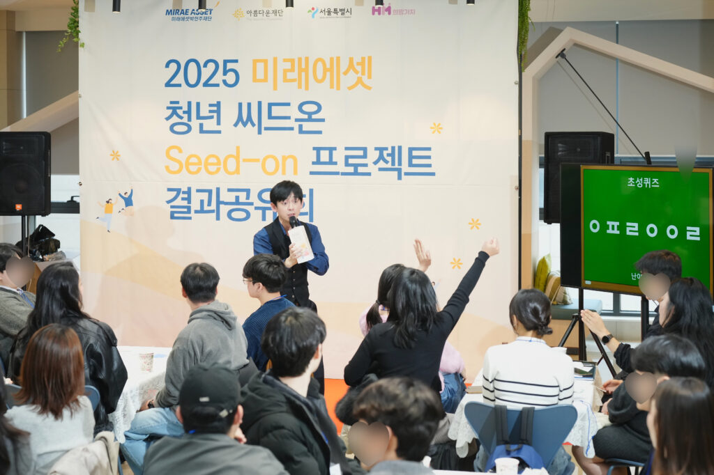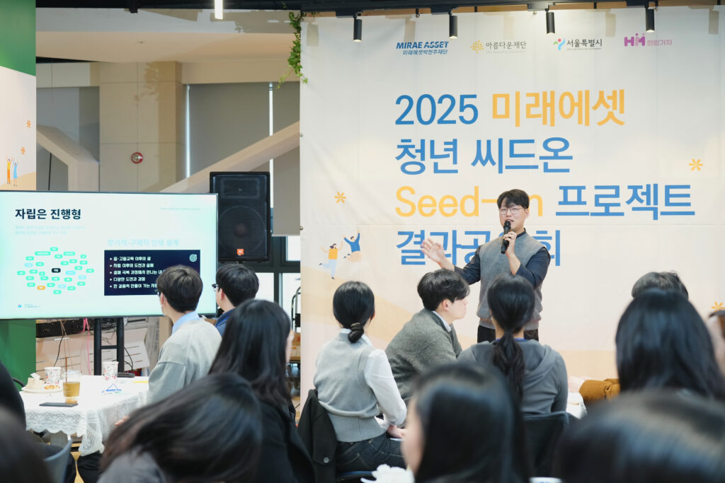 특히, 2025년에는 서울시와 미래에셋박현주재단·아름다운재단이 ‘가족돌봄청년 금융자립 지원’ 업무협약(MOU)을 체결해 지원대상을 기존 자립준비청년에서 가족돌봄청년까지 확대해 시행했습니다. 그 과정을 함께해 온 청년들이 ‘2025 미래에셋 청년 씨드온 프로젝트 결과공유회’로 모두 모였습니다. 경제를 배우고, 돈의 흐름을 이해하며, 스스로 삶의 기준을 세워온 청년들의 이야기를 전합니다.