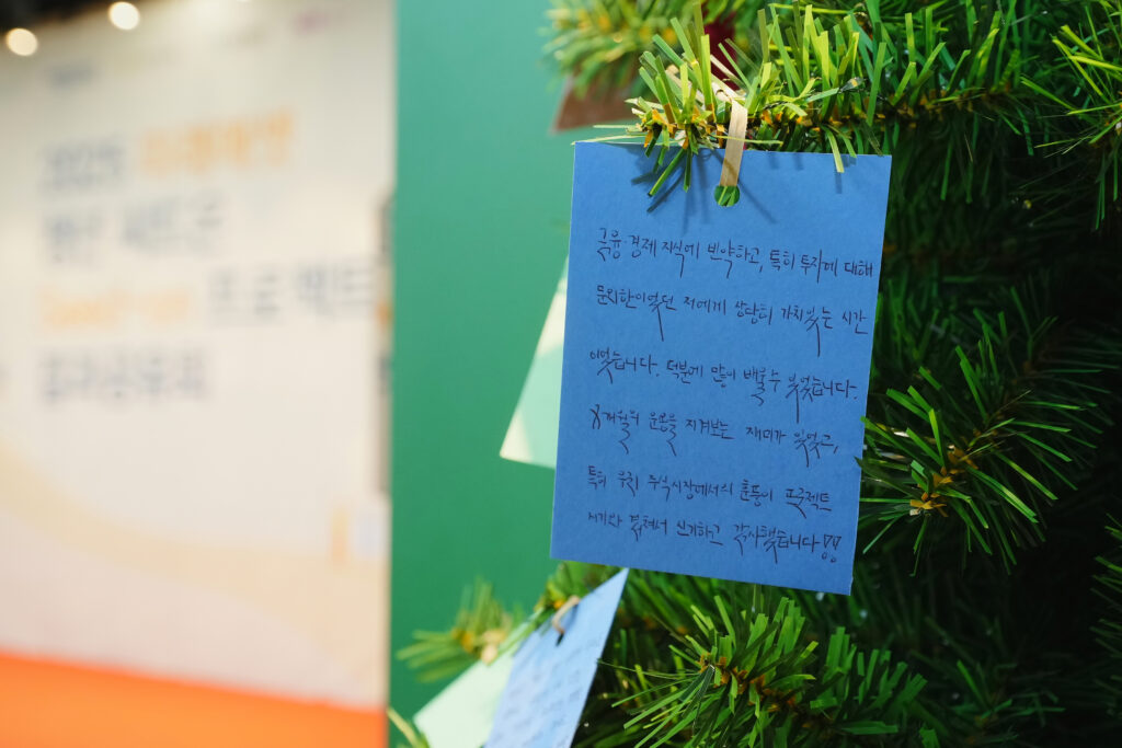 마지막으로 ETF 배분 일정이 안내됐습니다. 향후 ETF를 어떻게 사용하겠냐는 질문에 누군가는 장기투자를 이어가겠다고 했고, 한 청년은 생활자금으로 활용하겠다고 말했습니다. 선택은 각자의 몫이지만, 이제 그 선택에는 지난 10개월 동안 쌓아온 배움이 함께할 것입니다.