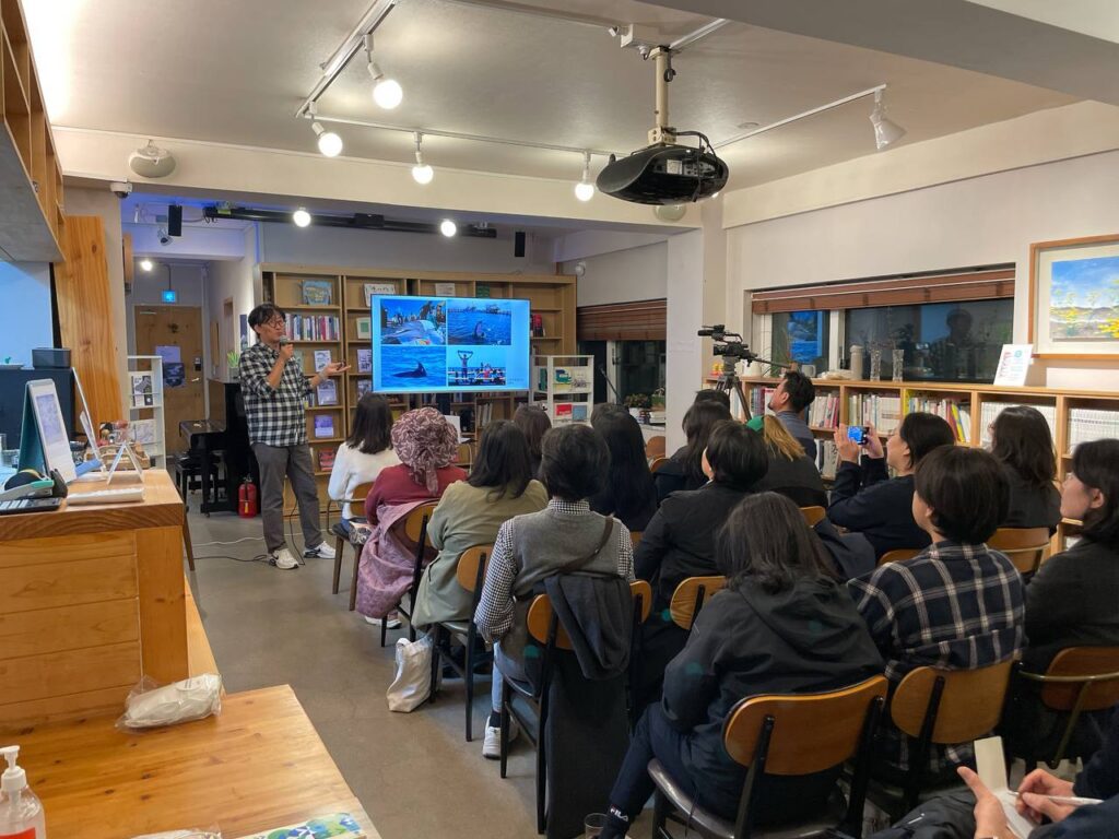 온라인을 넘어 오프라인에서도 의미 있는 만남이 이어졌습니다. 다정한 가을밤에 진행되었던 남종영 작가의 ‘다정한 거인’ 공개 북토크에는 약 40여 명의 분들이 참여해 고래와 인류의 관계, 기후위기, 생태 문제에 대해 이야기를 나눴습니다. 또한 환경정의가 주최한 2025 환경책 큰잔치에서 환경책으로 선정된 책의 저자와 출판사 관계자들을 만나며, 에코부커스 콘텐츠를 이미 알고 있고 출연이나 협업에 참여하고 싶다는 피드백을 듣기도 했습니다. 이 프로젝트가 환경책을 둘러싼 현장과 네트워크 안에서 조금씩 신뢰를 쌓아가고 있음을 확인할 수 있는 순간들이었습니다.