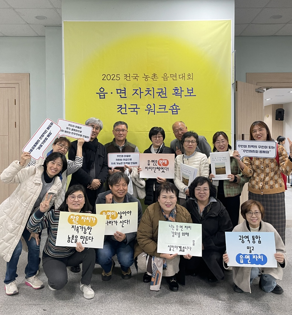 이러한 고민을 확산하고 구체적인 행동으로 조직하기 위한 취지에 공감하는 여러 단체와 연구자들이 모여 ‘읍·면 자치권 확보를 위한 풀뿌리 공동행동(읍면자치공동행동)’이라는 읍면 기반 전국 농촌활동가들의 전국 네트워크 조직을 2025년 3월 15일 발족하였습니다. 이미 결성 논의를 진행하고 있는 상황에서 변화의 시나리오 지원사업 공모를 접하고 신청해 선정되었지만 아름다운재단의 지원 덕분에 애초 예정했던 것보다 프로그램을 더 확대해서 4회의 1박 2일 집중학습회, 2회의 집담회, 전국 농촌 읍면대회 등의 굵직하고 알찬 행사를 치를 수 있었습니다.