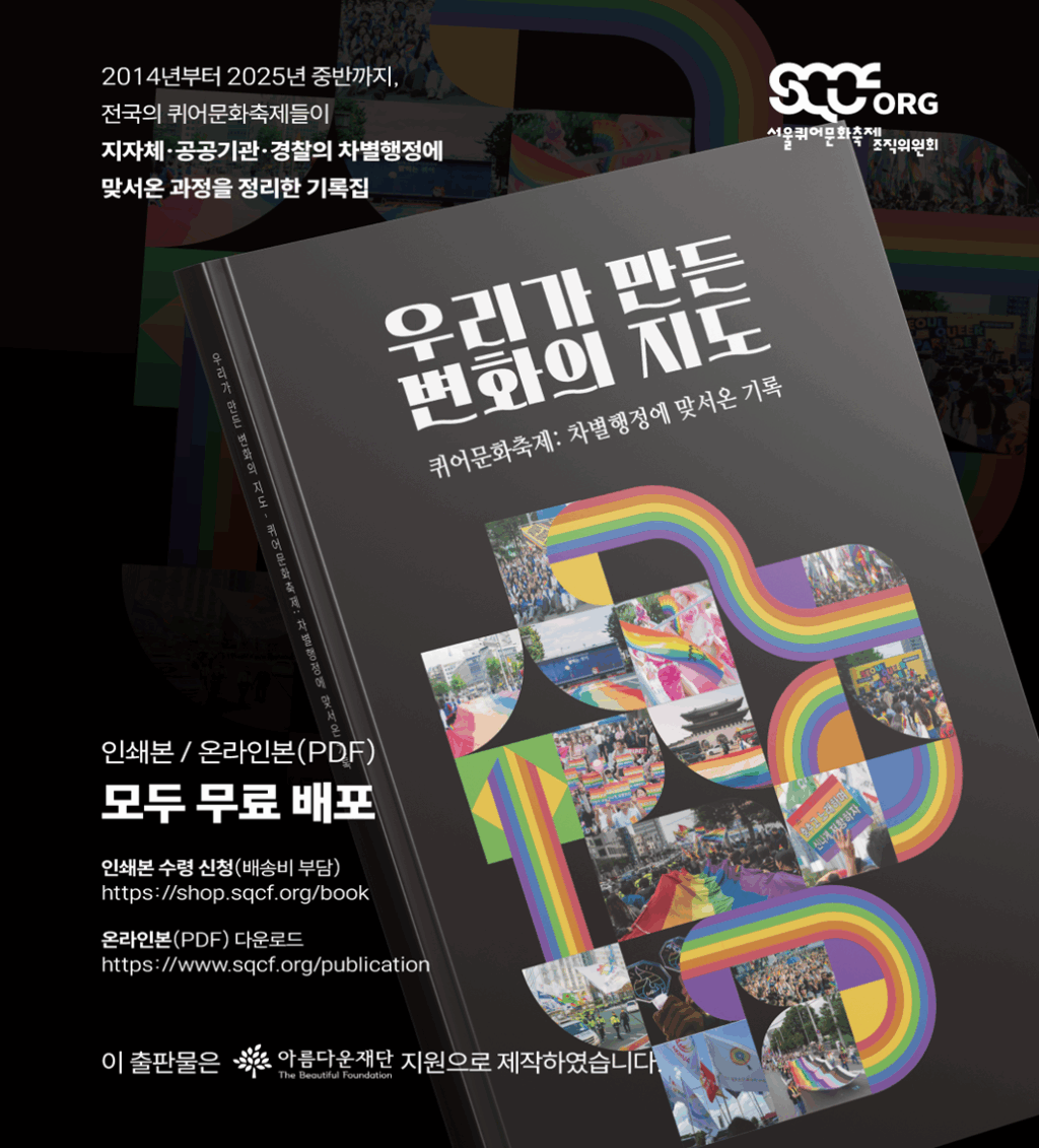 실무자를 위한 ‘전략 가이드북’ 탄생: 포럼의 결과물로 제작된 사후 연계 출판물 ‘우리가 만든 변화의 지도 – 퀴어문화축제: 차별행정에 맞서온 기록’은 단순히 사례를 나열하는 방식에서 벗어나 사례별 유형화 과정을 거쳤습니다. 아름다운재단의 피드백을 통해 고도화된 이 기록물은 유사한 차별에 직면한 활동가들에게 실질적인 도움을 줄 수 있는 전문적인 지침서가 될 것입니다.