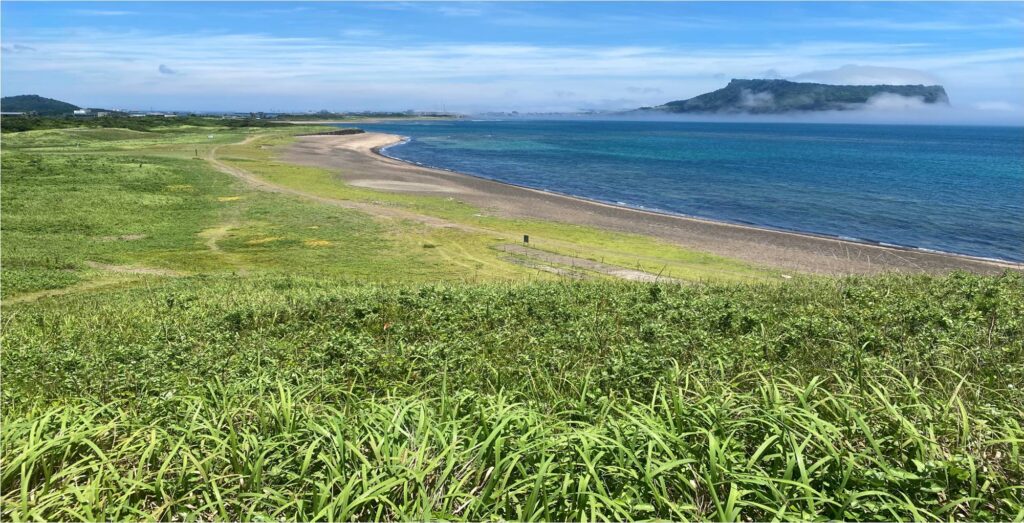 제주도의 해안사구는 화산의 영향을 받은 곳이 많습니다. 즉, 제주 해안사구는 화산섬과 바람의 역사를 담은 그릇이라고 할 수 있습니다. 그렇기에 제주민의 역사가 오롯이 담겨있습니다. 또한 이곳은 블루카본의 핵심인 염생식물의 거점이며, 바다거북과 흰물떼새 같은 동물이 알을 낳고 살아가는 중요한 서식지입니다.
