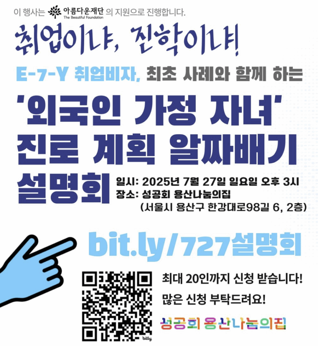 이번 프로젝트의 가장 큰 성과 중 하나는 국내성장인력(E-7-Y)의 신설로 이주배경 후기 청소년들의 취업 장벽이 많이 낮아졌다는 점입니다. 그동안 이주배경 청소년들은 취업을 하려면 반드시 대학에 진학해야 하거나, 매우 제한된 직종(특정활동 (E-7))에만 종사할 수 있었습니다. 하지만 이주배경 (후기) 청소년의 인권과 노동권을 옹호해 온 본 성공회 용산나눔의집의 노력과 여러 이주인권단체의 활동으로 국내성장인력(E-7-Y) 체류자격이 신설되었습니다. 이제 이주배경 청소년들은 고등학교만 졸업해도 직종 제한 없이 취업할 수 있는 길이 열리게 되었습니다.