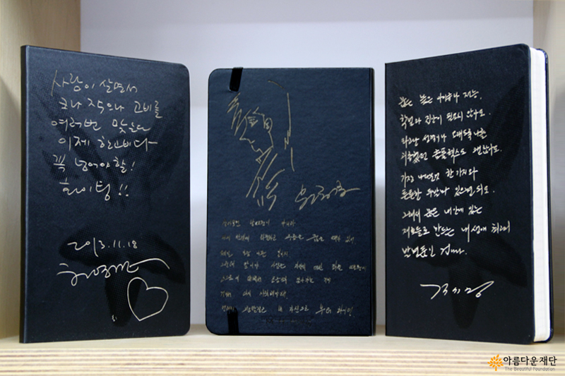– 조정래, 윤태호, 박원순 등 각계 명사들이 전하는 격려와 응원의 메시지를 다이어리에 담아 전시