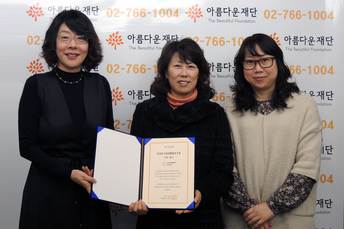 한살림서울, 18일 오전 9시 30분, 아름다운재단에서 전달식 가져