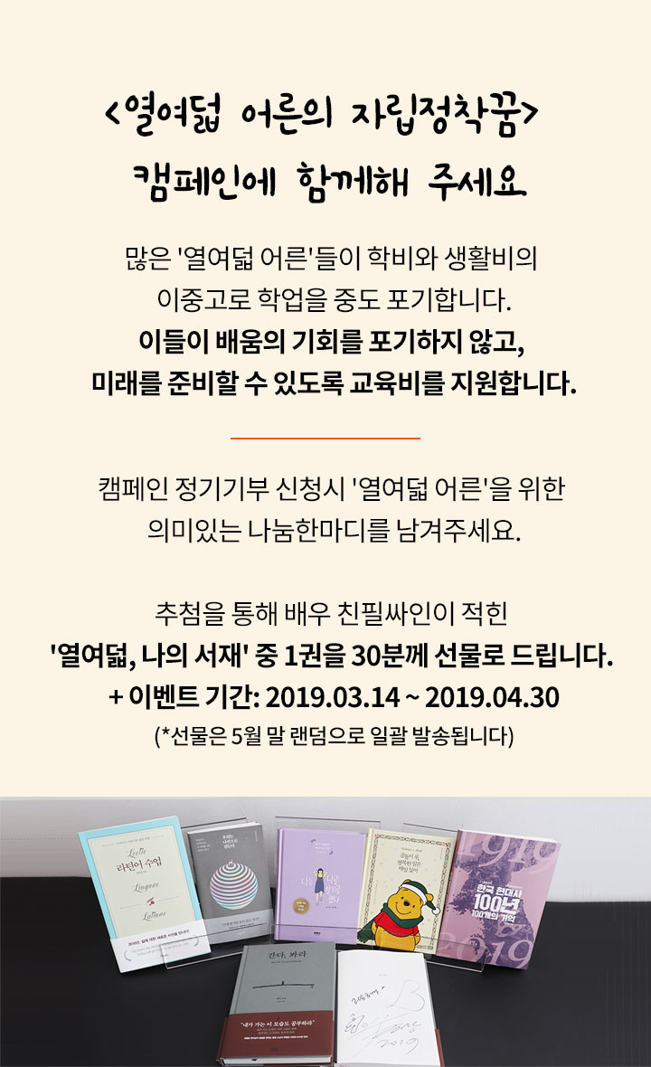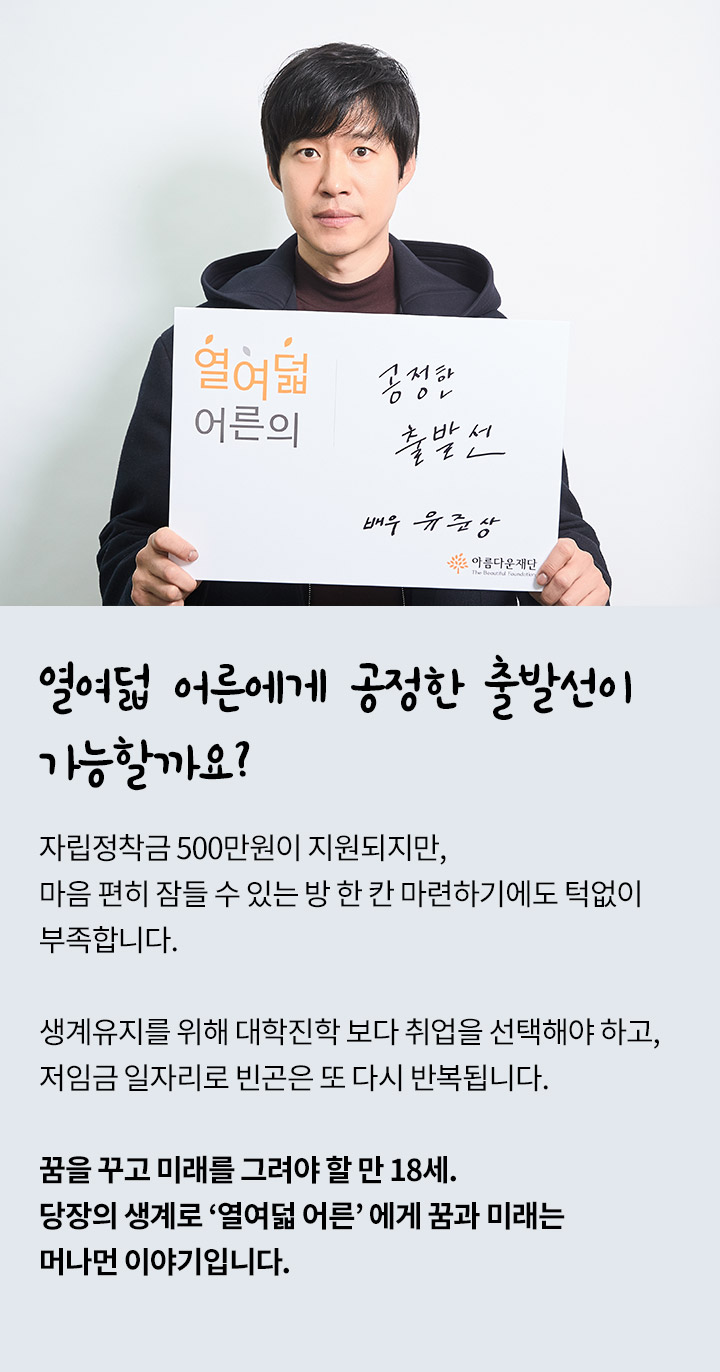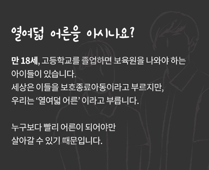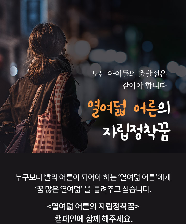 * 이 캠페인의 기부금은 ‘교육영역기금’을 통해 보호종료아동의 교육비 지원에 사용됩니다.