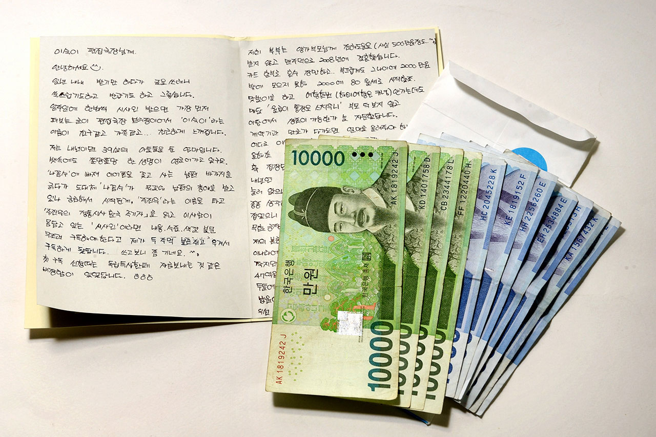편지봉투에 담아 주간지에 보내왔습니다.