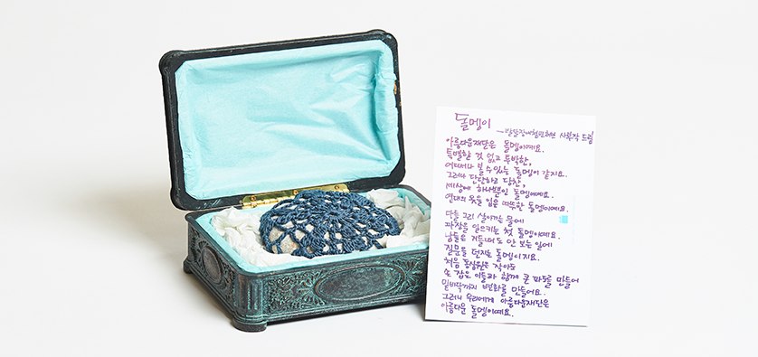 아름다운재단은 특별할 것 없이 흔하고 투박한 돌멩이 같아요. 그러나 단단한 연대의 옷을 입은 세상에 단 하나뿐인 따뜻한 돌멩이예요. 잔잔한 물에 파장을 일으키는 첫 돌멩이에요. 처음 동심원은 작아도 손잡은 이들과 함께 큰 파도를 만들어 밑바닥까지 변화를 만들어요.