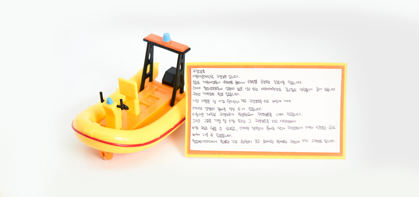 아름다운재단은 완벽하고 화려한 구조선보다는 긴급할 때 꼭 필요한 구명보트와 같아요. 큰 구조선은 사각지대 속에서 꺼져가는 불씨들을 살리기 어렵지만 구명보트는 꺼져가는 불씨들을 신속하게 살릴 수 있어요. 아름다운재단은 현장 감수성이 적은 큰 돈 보다는 현장성을 신뢰하고 눈높이에 맞춰 실질적인 지원을 해주고 있어요.